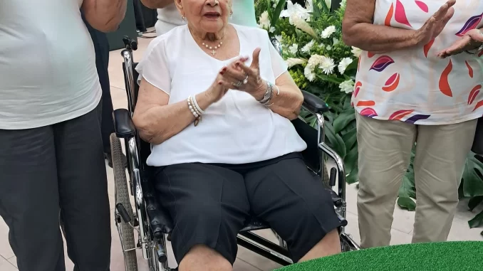 La foto corresponde al 60 aniversario y en ella aparecen Damas Fundadora y el gerente general Miguel Gómez que les aplaude en nombre de asociados y empleados.