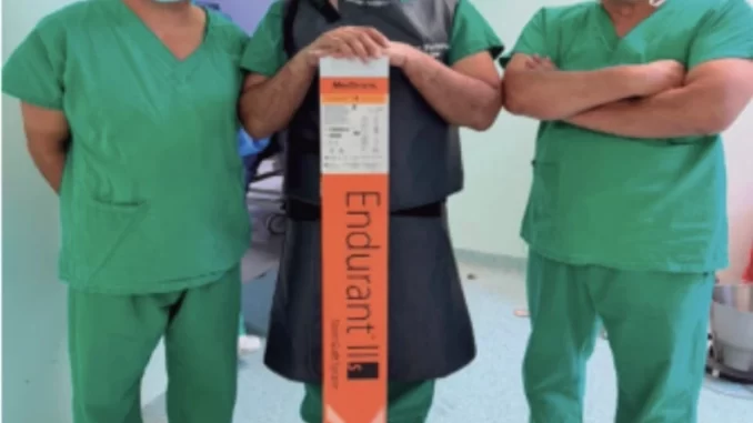 En esta ocasión, se realizó la cirugía de endoprótesis de aorta abdominal, la cual en términos sencillos consiste en colocar una “malla reforzada” dentro de la aorta para tratar un aneurisma.