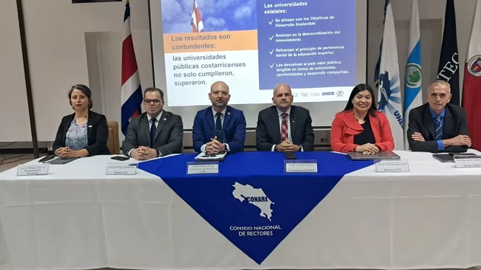 Este lunes 20 de abril, el Consejo Nacional de Rectores (CONARE) presentó, en conferencia de prensa, los resultados del Informe de Cumplimiento de Indicadores, un mecanismo formal de rendición de cuentas acordado entre las autoridades universitarias y el Gobierno de la República desde el año 2023, mediante el cual se da seguimiento a los compromisos asumidos en el marco del financiamiento.